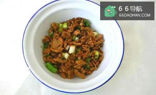 10小饼中间加上炒好的肉丁。