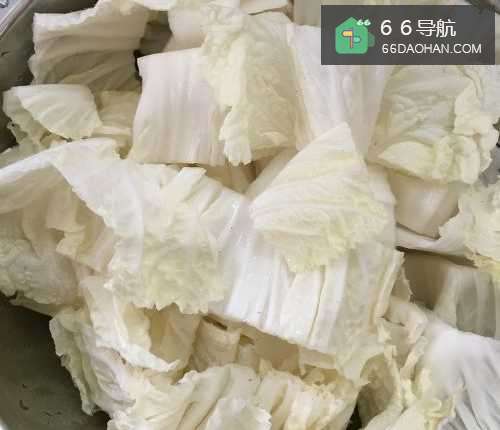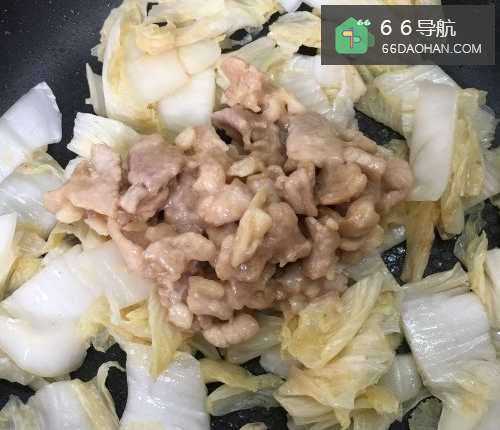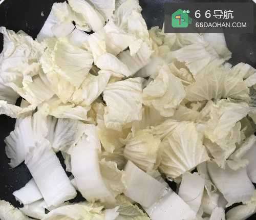 7锅继续加少财英番许食油,将白菜放入,炒至7成熟,如下图所示。