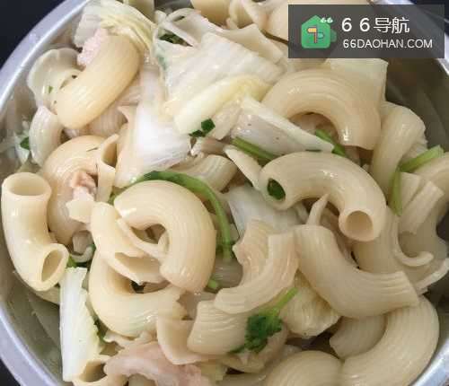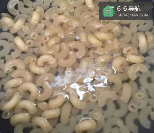 将通心粉洗净,放入沸水中煮10分钟使之熟透,然后捞出控水备用,如下图所示。