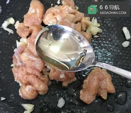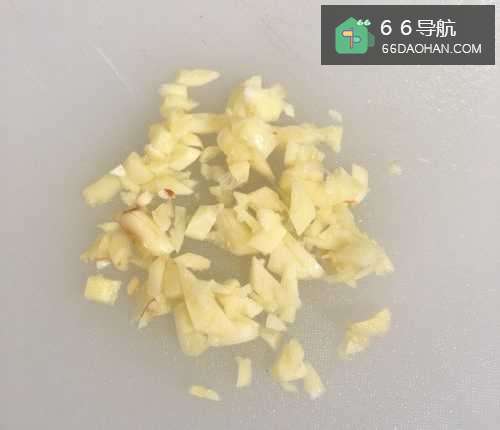 4剁一些蒜末,锅热油以后把它炝香,如下图。