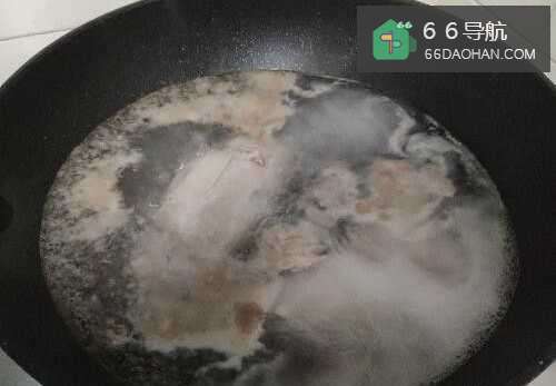 2锅里加入冷水煮开后放入鸡胸肉和料酒煮8分钟左右,如图