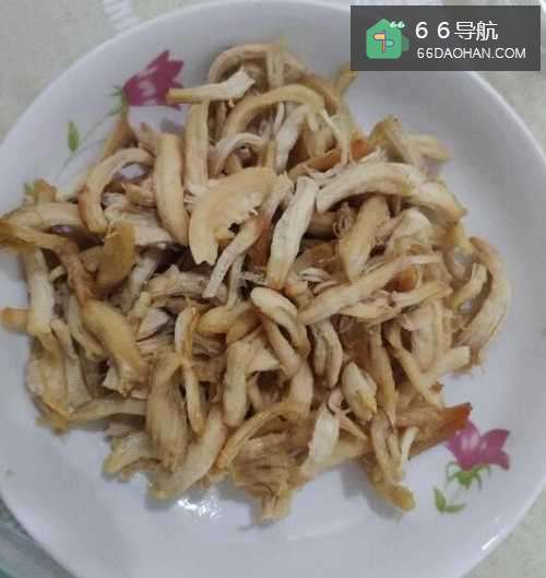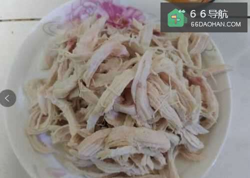 3等到鸡胸肉冷了以后撕片,如图