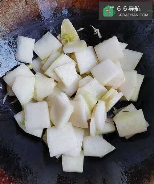 大概要炒三分钟,多炒一会儿,炒至冬瓜看起来软塌塌了,就算是炒好了。