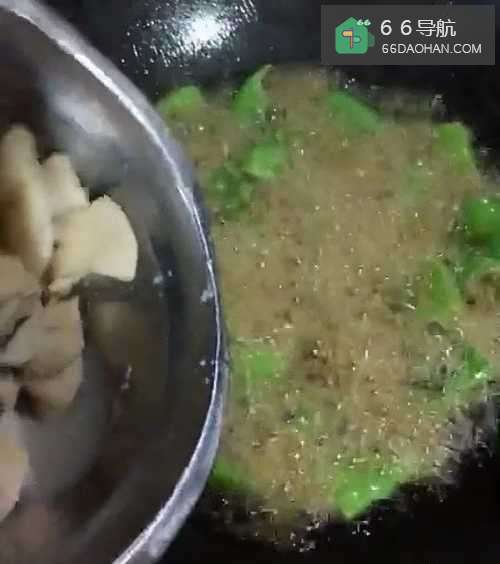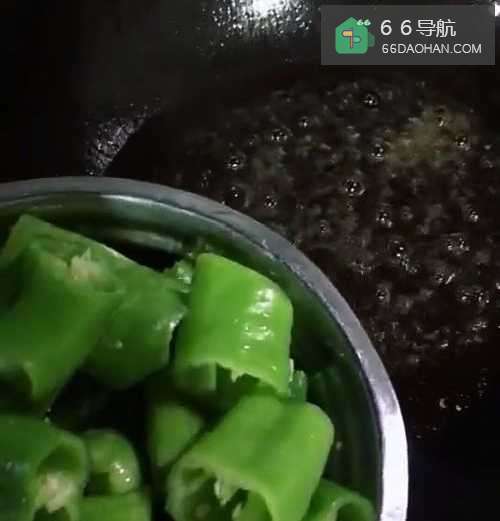 2锅中放油,油温七成热时放入青椒,翻炒均匀。