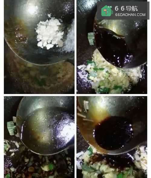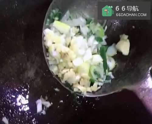 4锅里放油,油温七成热时,放葱、姜爆炒。