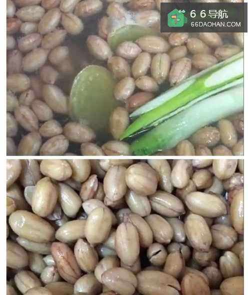 2锅中加水,倒入花生,加盐、姜片、大葱、八角、煮十分钟,捞出沥水备用。