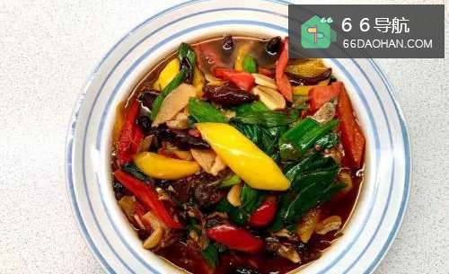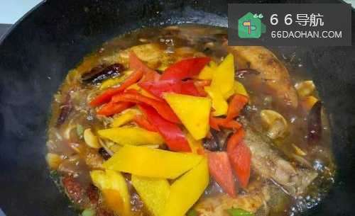 6再放入黄椒、红椒