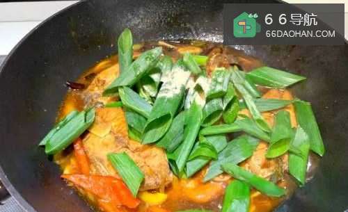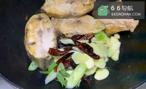 3两面煎焦黄感后入葱白、姜片、蒜片、干辣椒爆香