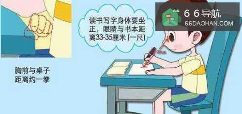 握笔的手和笔尖的距离要有一寸,胸部要和桌子距离有一拳,书本要和眼睛的距离有一尺。