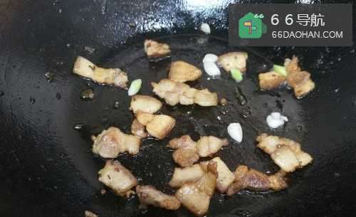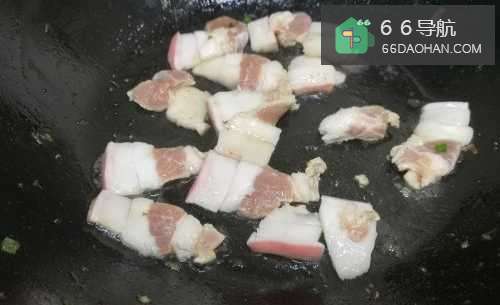 22.锅涂一点点油,把五花肉放下,小火,像烤肉一样煸出猪油。