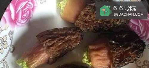 4用小白菜将羊肚菌菌柄封堵住防止肉末外露,将羊肚菌放入锅中蒸煮10分钟就大功告成啦