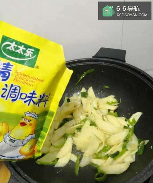 2锅中放入适量油,烧至7层热,放入青椒、葱段煸香。