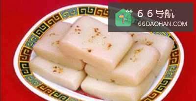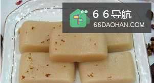 这种糕用糯米、粳米、红糖和果仁、松子、红枣拌和后,在笼格中蒸成,松软可口。