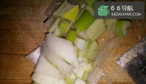 烙饼不宜切丝,切成菱形块状做出来不会显腻,并且品相比较好。