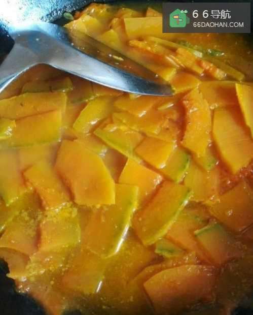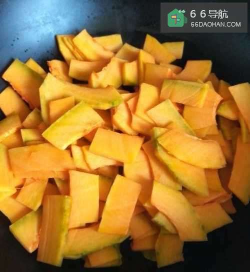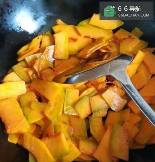 因成熟的南瓜含有不少淀粉和糖分,薄薄的南瓜很容易粘锅,所以要不停的翻动。