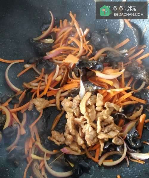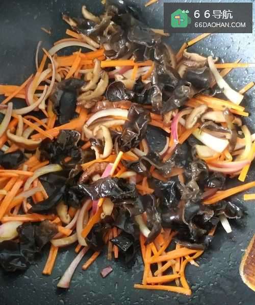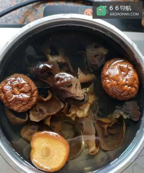 先将香菇木耳洗洗再放入冷水中泡,发好取用时,洗净切丝备用。