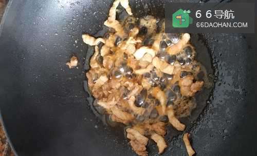 4油锅加热至七成后,先将猪肉炒至金黄备用。