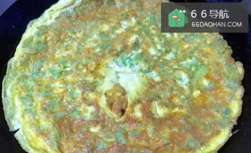 5待蛋液凝固之后,用铲子轻轻的翻面,另一边也煎至金黄色即可熄火。