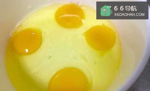 2接着打4个鸡蛋放在碗里,把鸡蛋打散,在此步可以加入适量盐打均匀备用!