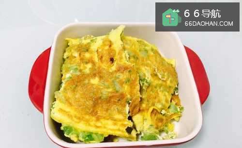 6最后一步就是将煎好的苦瓜蛋饼装在盘子里端上桌享用啦!吃之前可以加入辣酱或者其他酱料。