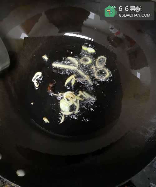 3爆出香味后加入葱花和姜丝,进一步增加辅料的香味。