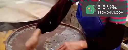 2倒一小勺米浆入一个圆型簸箕内,摇均匀成小薄层后放入锅中高温蒸熟。