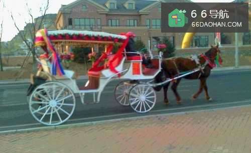 3装饰的马车就是在马缰绳上套上一辆特制带轮子的车,马行走的时候要观看景点。