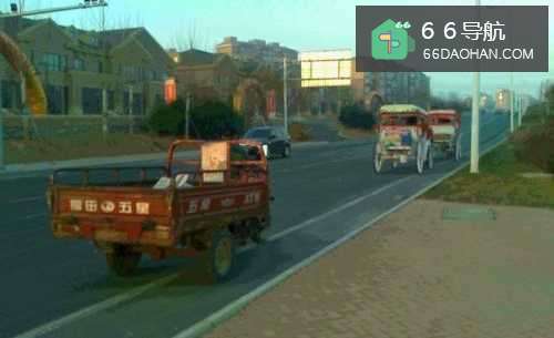 5道路的一边的通道是摩托车和自行车的通道,所以摩托车的速度就要减慢,待马车过去后才能正常的行驶。