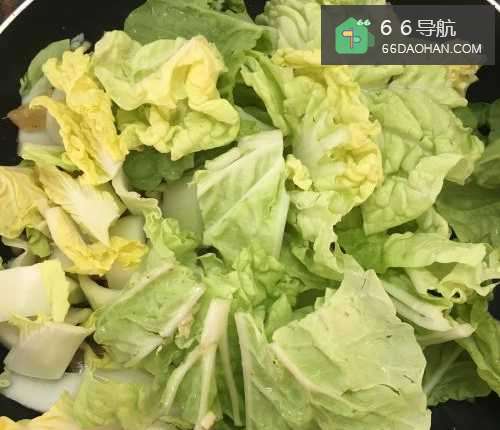 5接着把圆白菜放入,大火翻炒到5成熟。