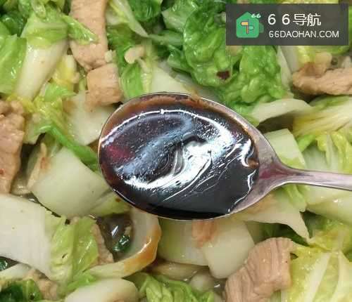 6之后放入1汤勺生抽和1汤勺食盐,翻炒入味,菜熟了以后就可以了。