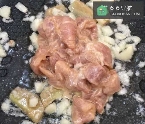 4然后放入瘦肉片,中小火翻炒至5成熟。