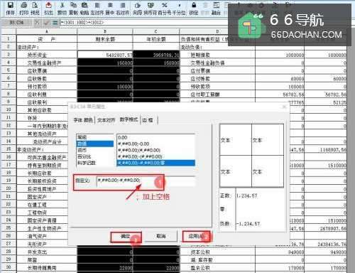 6在“自定义”对话框中,将数值修改为【,0.00;,0.00; 空格】,点击【应用】→【确定】即可。