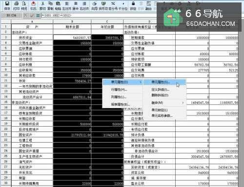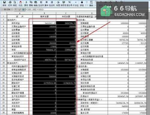 2在“资产负债表”界面,选择报表单元格【B3:C34】和【E3F34】;