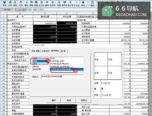 5在“数字格式”页签界面,选择【数值】→【,0.00;,0.00;零】;