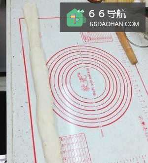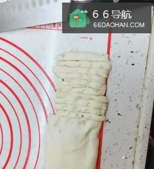 5将面卷稍微压平,切成筷子粗细的条,切到10条左右,把切好的条一起拉长,旋转,卷起来,尾巴塞到底部就好