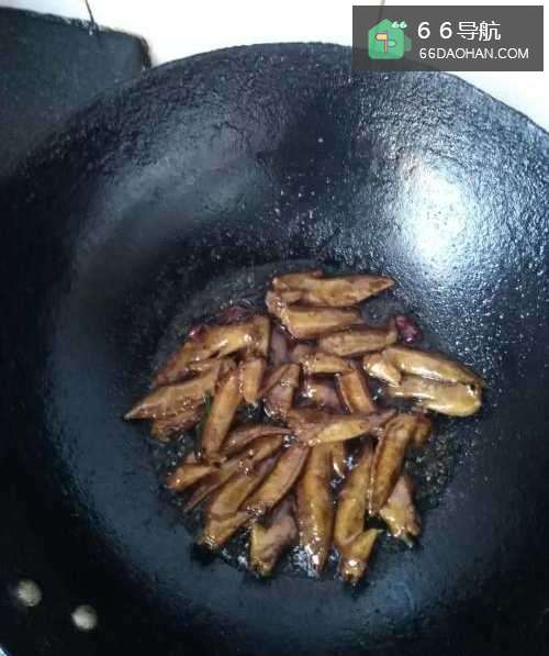 5加入适量的酱油,料酒,进行翻炒,加入辣椒末、生姜末一起翻炒