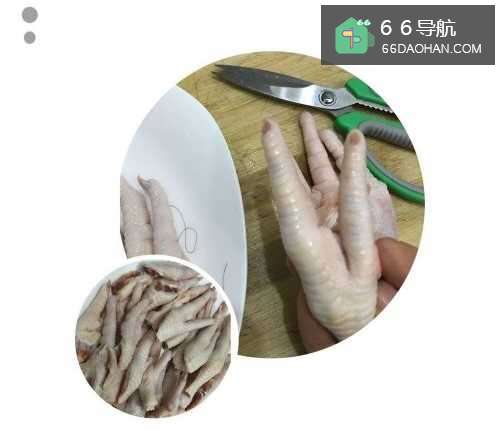 鸡爪将鸡爪洗净,用剪刀去掉脚趾甲;