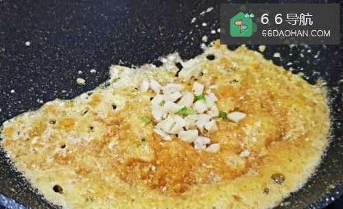 待冒出大量金黄泡泡,将蒜末倒入爆香。