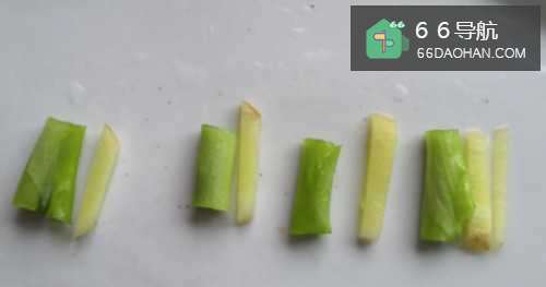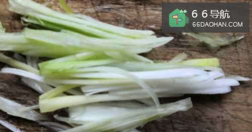 再将大葱洗干净,然后切下葱白部分,葱叶丢掉,葱白一部分切成丝,一部分切成小段。
