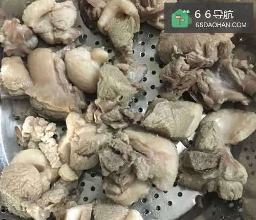 鸭肉斩件,焯水煮出浮沫以后,捞出冲洗掉浮沫,然后控水备用。