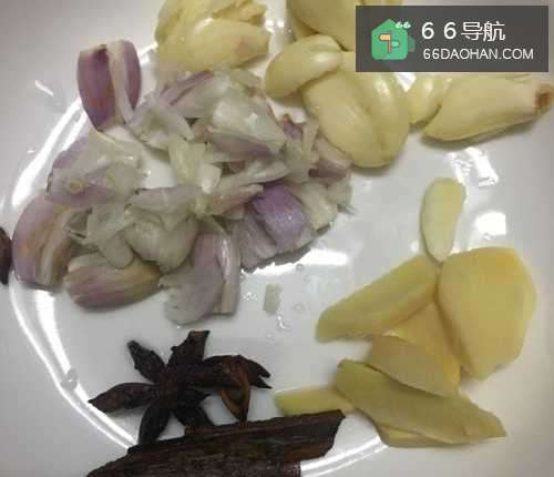 3在准备一些姜葱蒜、桂皮、八角,洗干净,处理好。