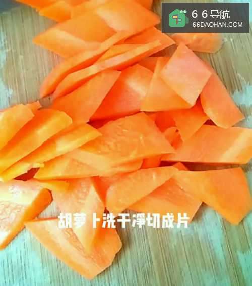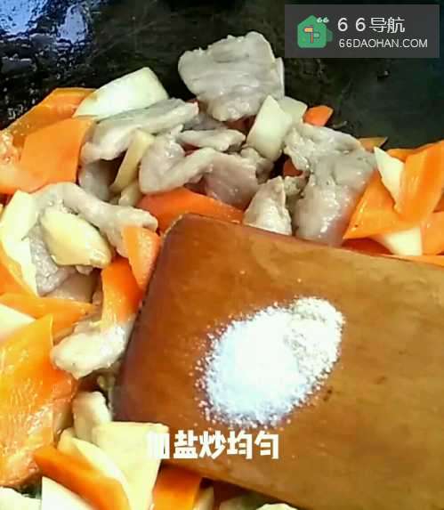 6炒至切成薄片,切成薄片,将胡萝卜和杏鲍菇炒熟,加盐炒均匀,然后关火。