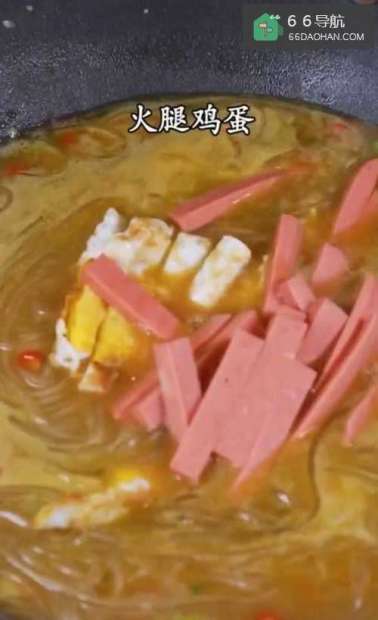 6倒入粉丝、火腿鸡蛋,转小火煮10分钟