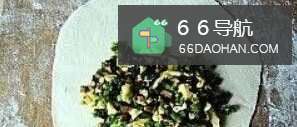10取一分擀圆皮放入韭菜馅料。