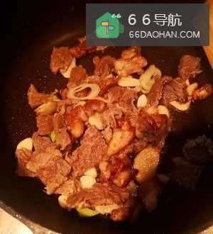 7加入煮好的牛肉,一勺生抽一勺耗油一勺料酒