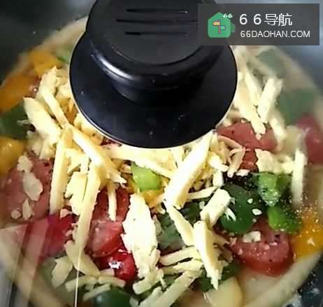 6盖上锅盖,小火焖6分钟,烤到芝士完全融化即可。