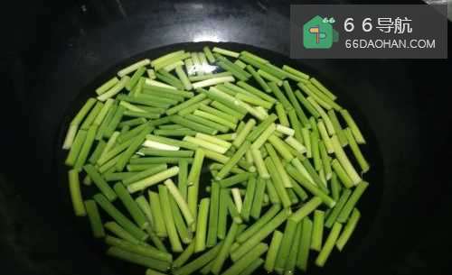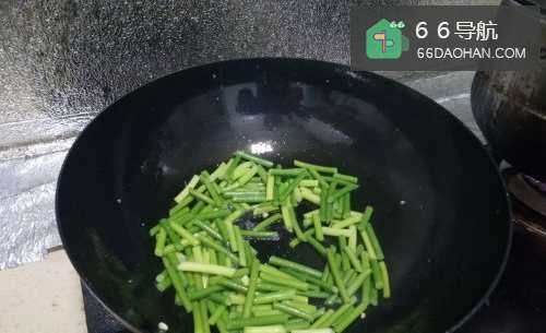 4锅中放油,大火爆炒一下蒜苔,记住一定要大火。