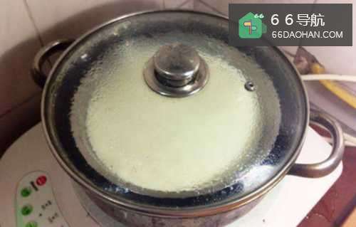 4将搅拌均匀的粉浆放入蒸锅里大火烧开转中小火煮至凝固;