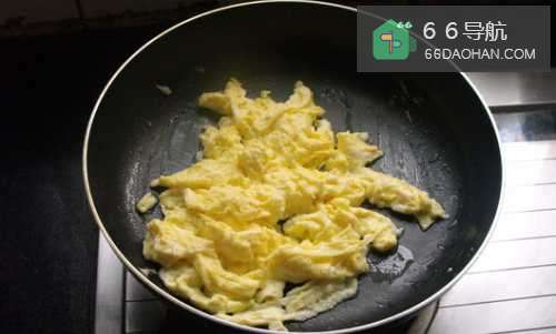 先小火把鸡蛋煎炒一下,然后起锅,再炒西红柿。