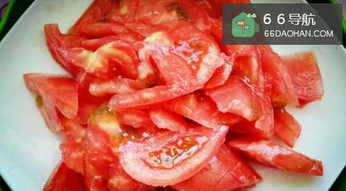 4切好西红柿,打好鸡蛋就可以开始煮了。